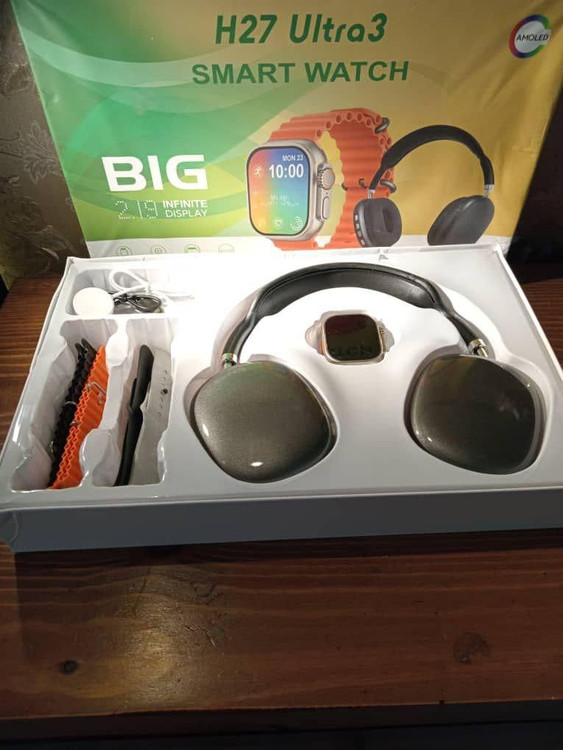 ساعت هوشمند H27 ULTRA3 به همراه هدفون طرح P9 ساعت هوشمند H27 Ultra 3: ترکیب زیبایی و عملکرد ساعت هوشمند H27 Ultra 3 یکی از جدیدترین مدلهای ساعتهای هوشمند است که با طراحی مدرن، امکانات پیشرفته و دوام بالا، به یک انتخاب عالی برای کاربران حرفهای و علاقهمندان به فناوری تبدیل شده است. ویژگیهای کلیدی ساعت هوشمند H27 Ultra 3 1. طراحی شیک و مدرن این ساعت با بدنهای فلزی و بند قابل تنظیم طراحی شده است. طراحی مینیمالیستی و شیشه مقاوم، زیبایی و استحکام را در کنار هم فراهم کرده است. 2. نمایشگر بزرگ و باکیفیت H27 Ultra 3 دارای نمایشگر لمسی رنگی با وضوح بالا است که اطلاعات را با شفافیت بینظیری نمایش میدهد. صفحه نمایش بزرگ این امکان را به شما میدهد که اعلانها، پیامها و دادههای ورزشی خود را بهراحتی مشاهده کنید. 3. امکانات سلامتی و ورزشی این ساعت مجهز به حسگرهای پیشرفتهای است که اطلاعاتی همچون تعداد گامها، میزان کالری مصرفی، ضربان قلب، پایش خواب و سطح اکسیژن خون را به شما ارائه میدهد. این ویژگیها، H27 Ultra 3 را به یک همراه هوشمند در فعالیتهای ورزشی و روزمره تبدیل کرده است. 4. اتصال بلوتوث و مدیریت اعلانها این ساعت از بلوتوث پشتیبانی میکند و به راحتی به گوشیهای هوشمند متصل میشود. شما میتوانید اعلانهای تماسها، پیامها و شبکههای اجتماعی را مستقیماً روی ساعت خود مشاهده کنید. 5. باتری قدرتمند و شارژدهی بالا H27 Ultra 3 دارای یک باتری با ظرفیت بالا است که امکان استفاده طولانیمدت از ساعت را بدون نیاز به شارژ مکرر فراهم میکند. 6. ضدآب بودن این ساعت با استاندارد ضدآب طراحی شده و در برابر رطوبت و عرق مقاوم است، بنابراین گزینهای مناسب برای استفاده در شرایط مختلف است. مزایای ساعت هوشمند H27 Ultra 3 طراحی شیک و کاربردی امکانات کامل پایش سلامتی نمایشگر باکیفیت و بزرگ قابلیت اتصال به گوشی هوشمند باتری بادوام برای استفاده روزانه کاربردها ورزش و فعالیتهای بدنی: پایش دقیق دادههای سلامتی و ورزشی. استفاده روزمره: مدیریت تماسها و اعلانها از طریق بلوتوث. استایل شخصی: طراحی مدرن که به استایل شما جلوه میدهد.