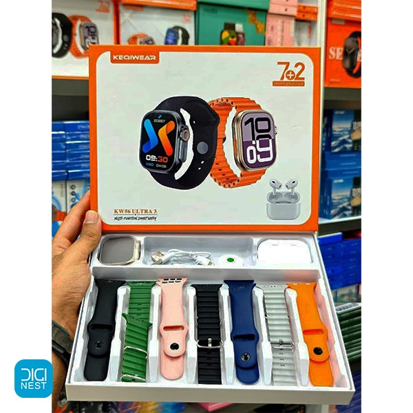 اگر به دنبال یک پکیج ساعت هوشمند و ایرپاد، با کیفیت و اقتصادی هستید، پک ساعت هوشمند طرح اولترا و ایرپاد keqiwear KW56 Ultra 3 گزینهای عالی برای شماست. این پک شامل یک ساعت هوشمند طرح اپل واچ اولترا و یک ایرپاد وایرلس به همراه 7 بند با رنگبندی جذاب است که با طراحی مدرن و امکانات قابل قبول، تجربهای فراتر از انتظار را ارائه میدهد.