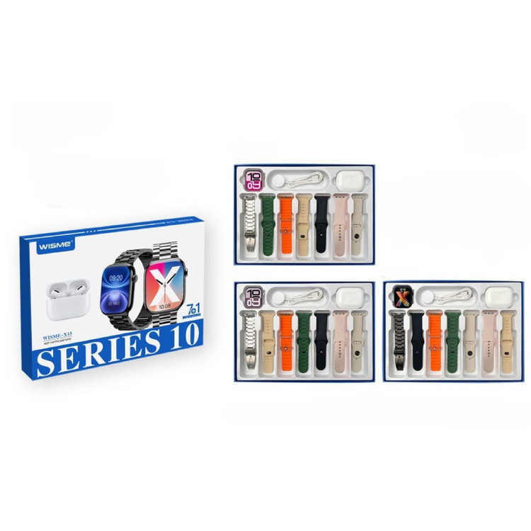 ساعت هوشمند 45میلی‌متر ویسمی مدل wisme-x15 با 7بند به همراه ایرپاد