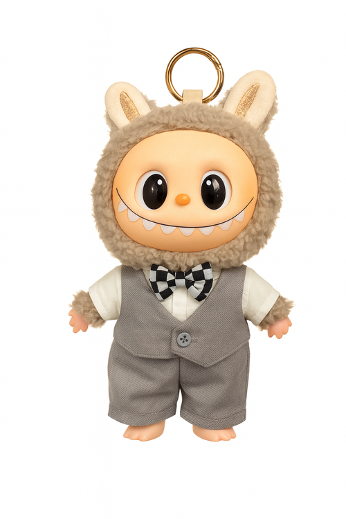 یک حلقهی فلزی طلایی در پشت سر که امکان آویز کردن عروسک را فراهم میکند.