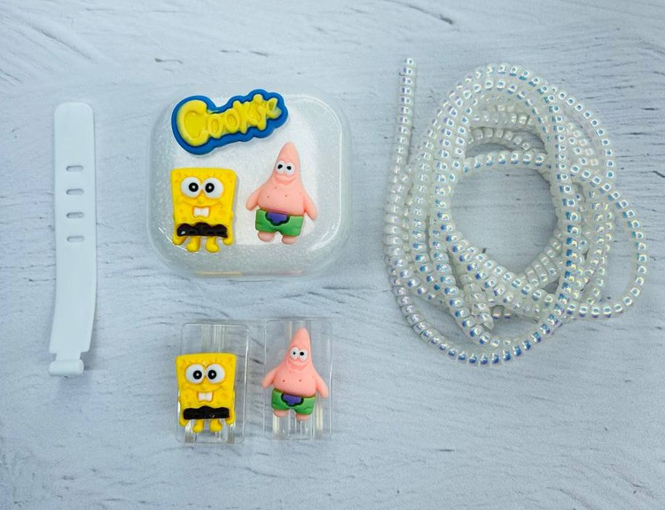محافظ کابل مدل باب اسفنجی به همراه محافظ شارژر دیواری 20 وات آیفون مجموعه 5 عددی