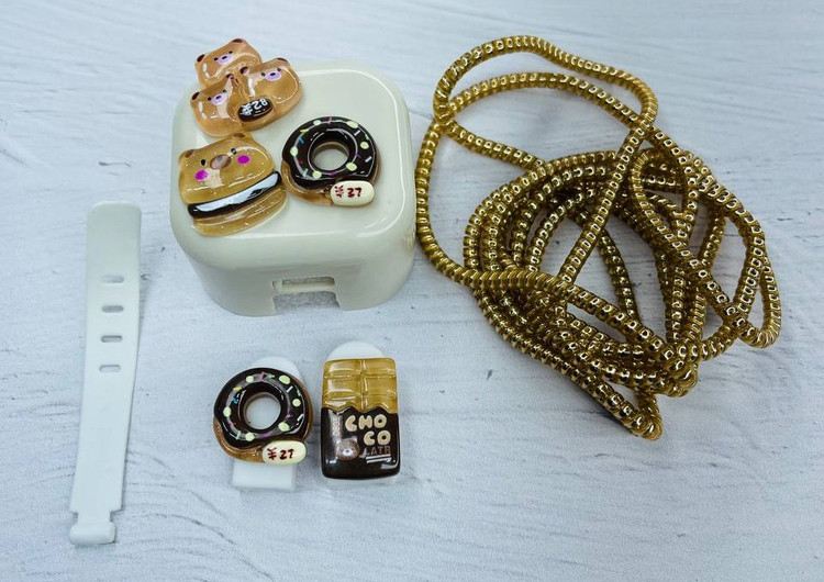 محافظ کابل مدل دونات به همراه محافظ شارژر دیواری 20 وات آیفون مجموعه 5 عددی