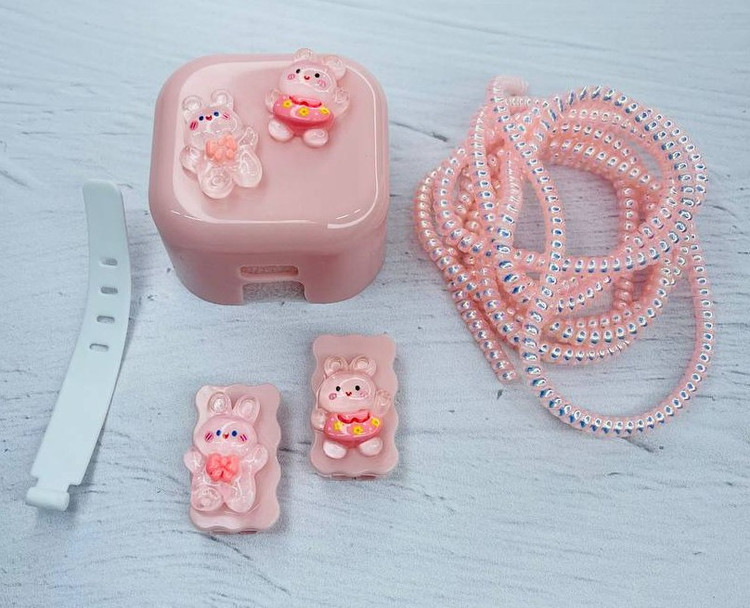 کریستالی ژله ای - ۵ تکه محافظ سیم شارژر محافظ شری کابل ۲تکه محافظ سری شارژرو کلگی سیم جمع کن مناسب شارژر ایفون ۲۰ وات ۳ پین