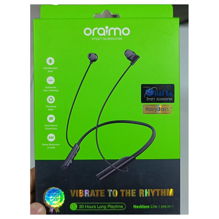 هندزفری گردنی اورایمو مدل Oraimo Necklace Lite – Vibrate مجهز به موتوری با فرکانس بالا که حداکثر سرعت آن به 15000 دور در دقیقه می رسد.