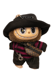 کلاه لبهدار از جنس جین با طرح ساده که روی سر عروسک قرار گرفته.