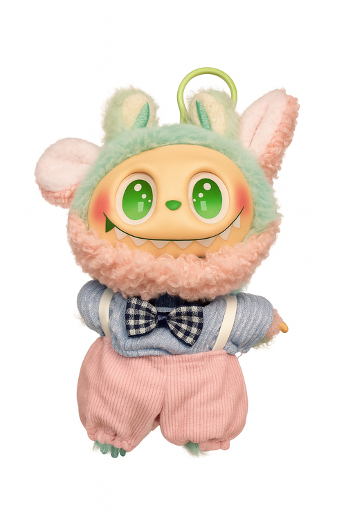 سرپوش پشمالوی فانتزی با ترکیب رنگی سبز نعنایی و صورتی روشن، همراه با گوشهای برجستهی عروسکی.