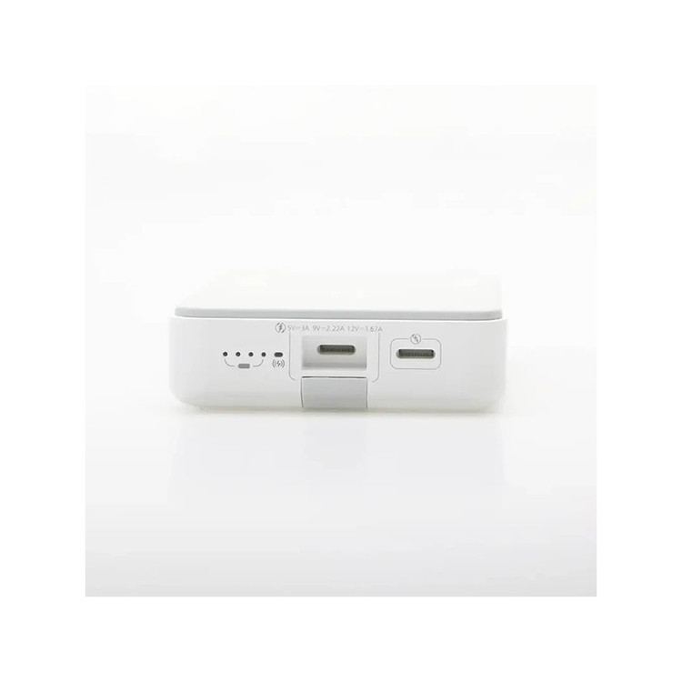ظرفیت : ۱۰ هزار میلی آمپر ساعت اقلام همراه : دفترچه راهنما, کابل شارژر Type-C به Lightning کنترل ها و کلیدها : کلید روشن و خاموش پورت ورودی : ۳ عدد (۲ پورت ورودی لایتنینگ، ۱ پورت ورودی Type-C) تعداد پورت خروجی : ۲ عدد (۱ عدد Type-C و ۱ عدد Lightning نحوه نمایش میزان شارژ باتری : LED کابل متصل : ندارد شارژ سریع : دارد شارژ بی سیم : دارد شدت جریان ورودی : Lightning / Type-C: ۳A – ۲A, Lightning: ۲A ولتاژ ورودی : Lightning / Type-C: ۵V/۹V, Lightning: ۵V/۹V شدت جریان خروجی : Lightning / Type-C: ۳A – ۲.۲۲A – ۱.۶۷A ولتاژ خروجی : Lightning / Type-C: ۵V/۹V/۱۲V توان خروجی کلی : ۱۵ وات (با سیم) ۱۵ وات (بی سیم) ظرفیت اسمی : ۱۰۰۰۰ میلی آمپر ساعت