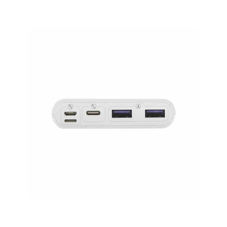 کنترل ها و کلیدها : کلید روشن و خاموش پورت ورودی : ۳ عدد (۱ پورت ورودی لایتنینگ، ۱ پورت ورودی Type-C و ۱ میکرو یو اس بی) تعداد پورت خروجی : ۳عدد (یک عدد Type-C, دو عدد USB) قابلیت شارژ همزمان : قابلیت شارژ همزمان ۳ دستگاه نحوه نمایش میزان شارژ باتری : نمایشگر دیجیتال کابل متصل : ندارد شارژ سریع : دارد شارژ بی سیم : ندارد شدت جریان ورودی : MICRO USB: ۲A, Lightning: ۲A, Type-C: ۳A – ۲A ولتاژ ورودی : MICRO USB: ۵V/۹V, Lightning: ۵V/۹V, Type-C: ۵V/۹V شدت جریان خروجی : Type-C: ۳A/۲.۲۲A/۱.۶۷A, USB-A۱,A۲: ۵A/۴.۵A/۲A/۱.۵A ولتاژ خروجی : Type-C: ۵V/۹V/۱۲V, USB-A۱,A۲: ۴.۵V/۵V/۹V/۱۲V توان خروجی کلی : ۲۲.۵ وات