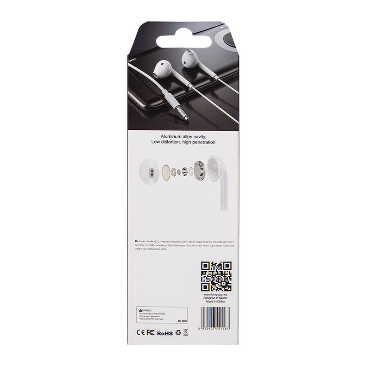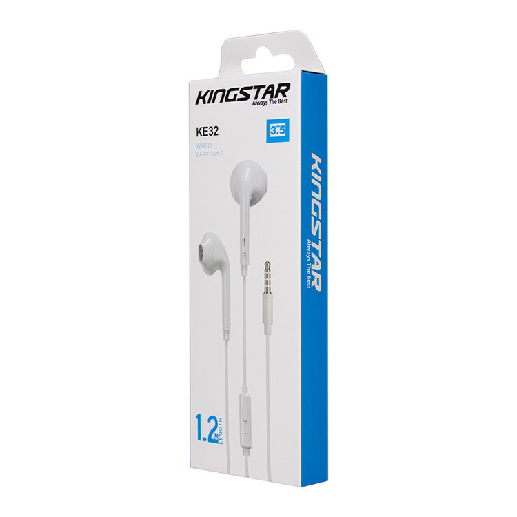 هندزفری مدل KE32 محصولی از کمپانی کینگ استار است که با وزن 11 گرم میتواند هر کاربر خوشسلیقهای را به خود جذب نماید. برای این مدل، یک میکروفون در نظر گرفته شده است تا کاربران قادر به مکالمه با موبایل خود باشند. همچنین یک عدد دکمه برای قطع و وصل کردن صدا در آن تعبیه شده است. با این دکمهها میتوانید به تماسهایتان پاسخ دهید یا مکالمه را قطع کنید.طول سیم هندزفری KE32 به اندازهی 120 سانتیمتر میباشد. اتصال آن، با یک جک 3.5 میلیمتری انجام میگیرد که باعث میشود با تمام موبایلها و پخشکنندهها سازگار باشد. صدایی که از این محصول با حساسیت 5db±100 به گوش شما میرسد، بسیار پرقدرت و واضح است. همچنین فرکانس و امپدانس این کالا به ترتیب 20هرتز الی 20کیلوهرتز و 32 اهم میباشد. قطر 14 میلیمتری درایور این هندزفری که دارای ساختار داینامیک نیز هست، موجب شده تا به راحتی از گوشتان جدا نشود. جنس این محصول نیز از پلاستیک ABS و PVC میباشد که از نکات برجسته آن میتوان به ضد اشتعال بودن کالا اشاره کرد. همچنین قطعات با کیفیت بکار رفته درون این محصول موجب شده تا حساسیت میکروفن نیز به 5db±42 برسد.