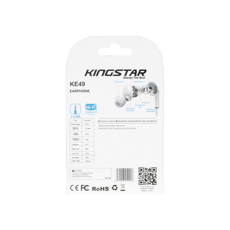 اگر شما هم علاقهمند به موزیک هستید و همواره محصولاتی را جستوجو مینمایید که انرژی و حس بسیار خوبی به شما منتقل کند، یک هندزفری باکیفیت و خوش ساخت جوابگوی نیاز شما خواهد بود. هندزفریها به شما کمک میکنند تا بدون اینکه مزاحمتی برای دیگران ایجاد نمایید، به موسیقی موردعلاقهی خود گوش دهید. هندزفریها به دو دستهی وایرلس و سیمدار تقسیم میشوند که هندزفری کینگ استار مدل KE49 از نوع سیمدار میباشد.هندزفری مدل KE49 محصولی از کمپانی کینگ استار است که میتواند هر کاربر خوشسلیقهای را به خود جذب نماید. برای این مدل، یک میکروفون در نظر گرفته شده است تا کاربران قادر به مکالمه با موبایل خود باشند. همچنین یک عدد دکمه برای قطع و وصل کردن صدا در آن تعبیه شده است. با این دکمهها میتوانید به تماسهایتان پاسخ دهید یا مکالمه را قطع کنید.طول سیم هندزفری KE49 به اندازهی 120 سانتیمتر میباشد. اتصال آن، با یک جک 3.5 میلیمتری انجام میگیرد که باعث میشود با تمام موبایلها و پخشکنندهها سازگار باشد. صدایی که از این محصول با حساسیت 96db به گوش شما میرسد، بسیار پرقدرت و واضح است. همچنین فرکانس و امپدانس این کالا به ترتیب 20هرتز الی 20کیلوهرتز و 16 اهم میباشد. قطر 10 میلیمتری درایور این هندزفری که دارای ساختار داینامیک نیز هست، موجب شده تا به راحتی از گوشتان جدا نشود. جنس این محصول نیز از پلاستیک ABS و PVC میباشد که از نکات برجسته آن میتوان به ضد اشتعال بودن کالا اشاره کرد.این محصول کمپانی کینگ استار که دارای تمامی استانداردهای لازم بوده و مورد استفاده کاربران زیادی قرار گرفته، دارای گارانتی یکپارچه 12 ماهه داده پرداز رایانه متین نیز میباشد. دفاتر گارانتی شرکت داده پرداز رایانه متین دارای 16 شعبه در استانهای تهران، البرز، اصفهان، خوزستان، فارس، خراسان رضوی، کرمان، همدان، گیلان، کرمانشاه، آذربایجان شرقی و غربی، یزد، مازندران، گلستان و قم میباشد که شما با مراجعه به این مراکز میتوانید از گارانتی این محصول استفاده نمایید. درغیر این صورت امکان ثبت گارانتی آنلاین نیز برای شما فراهم شده است.