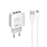 شارژرهای دیواری (وال شارژر یا به اصطلاح سریهای شارژر) عموما یکی از پرمصرفترین لوازم جانبی الکترونیکی هستند. داشتن یک شارژر دیواری با کیفیت میتواند علاوه بر حفظ سلامت باتری گوشی موبایل، زمان شارژ شدن را هم کاهش دهد. یکی از محصولات باکیفیت و فوقالعاده مطلوب موجود در بازار، توسط کمپانی کینگ استار با نام شارژر دیواری کینگ استار مدل KW163C طراحی و روانه بازار شده است. این مدل شارژر از سه درگاه خروجی USB و Type-C با حداکثر توان خروجی 17 وات بهره میبرد. استفاده از چیپ های هوشمند در فرآیند شارژ دهی نشان از تکنولوژی به روز این محصول است و خیال شما را بابت شارژ گوشی های شما راحت میکند. وجود صفحات مسی و آلومینیومی در طراحی داخلی آن باعث تعدیل دمای بهتر و افزایش طول عمر این شارژر شده است. بدنه این شارژر از پلاستیک ABS ضد اشتعال است که باعث وزن کم و در عین حال استحکام کافی محصول در برابر ضربه های احتمالی میشود. در کنار یک شارژر دیواری با کیفیت، از یک کابل شارژ نیز بهرهمند خواهید شد. این کابل تایپ سی با طول 1 متر و توان 30 واتی میتواند گزینه مناسبی برای شارژ دستگاه های شما باشد. از این کابل برای انتقال دیتا نیز میتوان استفاده کرد.
